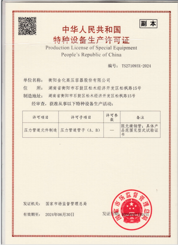 Copyright ©2019 衡陽金化高壓容器股份有限公司  地址:湖南省衡陽市石鼓區松木經濟開發區松楓路15號   備案號:湘ICP備19020863號-1   營業執照查閱