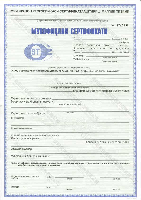 烏茲別克外貿認證
